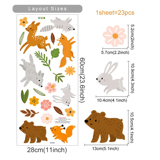 Boho Cartoon Flower Animal Nursery Wall Stickers Decor