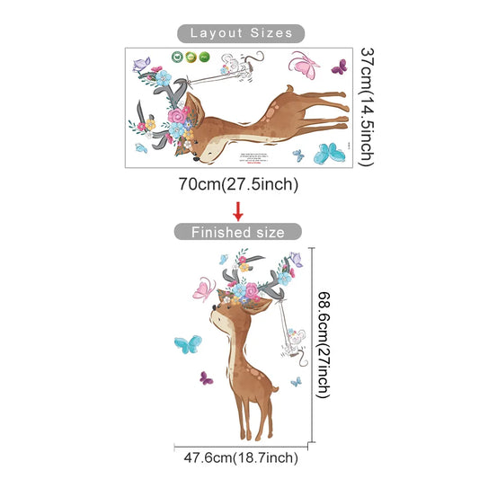 Cartoon Sika Deer Butterfly Flower Wall Stickers Nursery Vinyl Decals Kids Room Decor