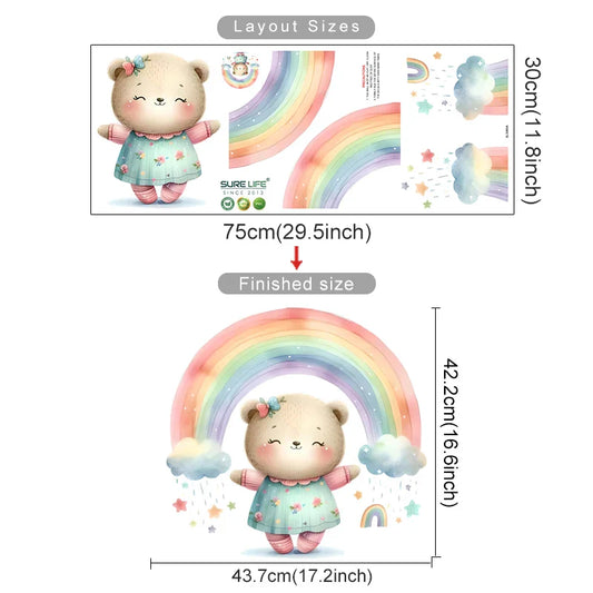Cute Bear Rainbow Cloud Wall Stickers Removable Nursery Decor Decals