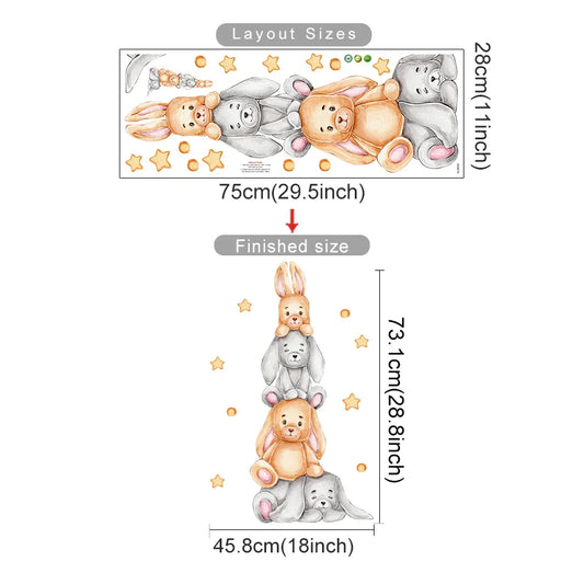 Cartoon Rabbit Bear Wall Stickers for Kids Room Decor