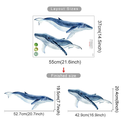 Cartoon Whale Wall Stickers for Bathroom Nursery Decor Removable Decals