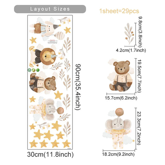 Cartoon Animal Wall Stickers for Kids Nursery Bedroom Decals