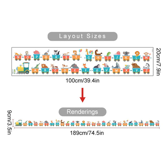 Cartoon Alphabet Train Animals Wall Decal Kids Room Decor