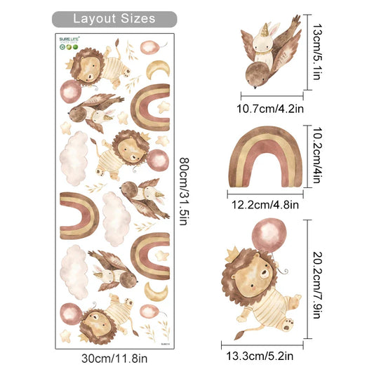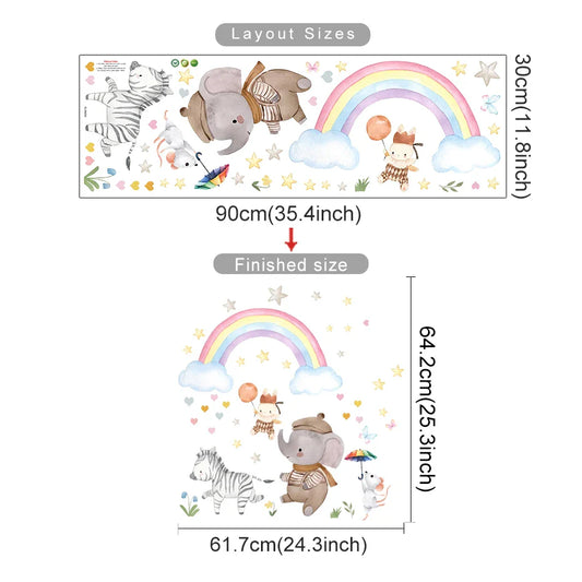 Cartoon Animal Rainbow Wall Stickers for Kids Bedroom Nursery Decor