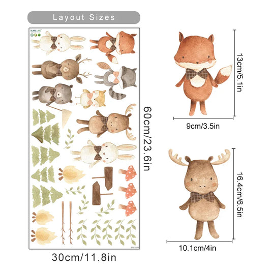 Boho Cartoon Rabbit Fox Forest Nursery Wall Stickers for Kids Room Decor