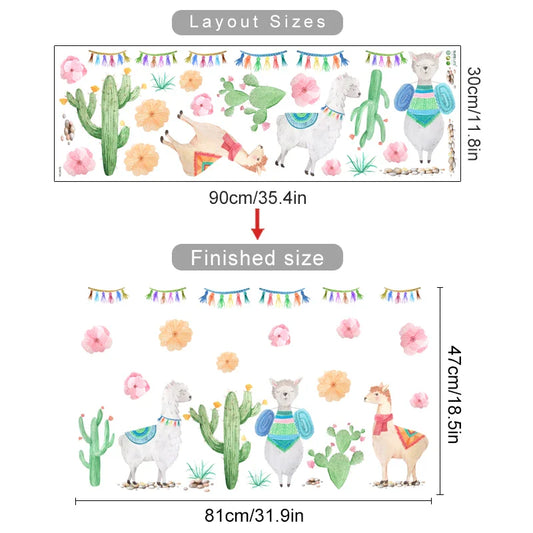 Boho Alpaca Cactus Nursery Wall Decals Kids Room Decor