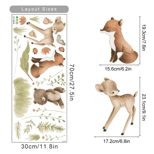 Cute Woodland Animal Wall Stickers: Deer, Bear, Floral Watercolor Nursery Decor