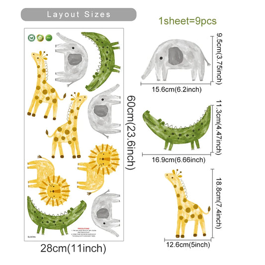 Cute Lion Elephant Giraffe Animal Wall Stickers for Kids Room Nursery Bedroom Decals