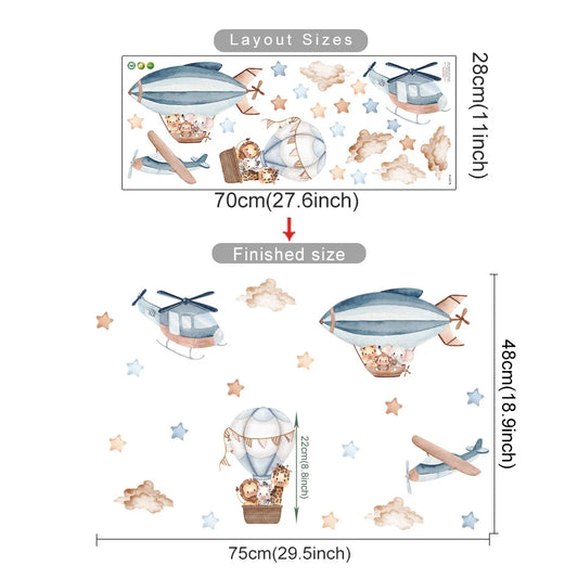 Cartoon Animal Hot Air Balloon Wall Stickers for Kids Room Decor Removable Decal