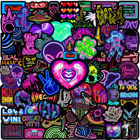 Cool Neon Light Cartoon Stickers - 10/30/50/100pcs Aesthetic Decals for Laptop, Motorcycle, Notebook, Car