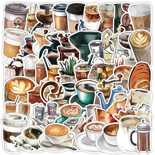 Cartoon Coffee Stickers Pack for Laptop, Phone, Guitar, Kids Toys