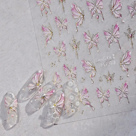 5D Glitter Butterfly Nail Stickers Aurora Charms DIY Manicure Decals