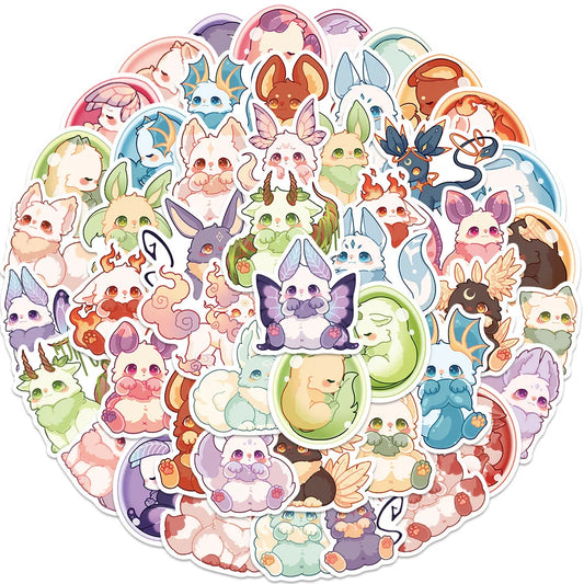 Kawaii Fantasy Creature Stickers Pack - Cute Cartoon Decals for Kids, DIY, Fridge, Helmet, Phone, Laptop