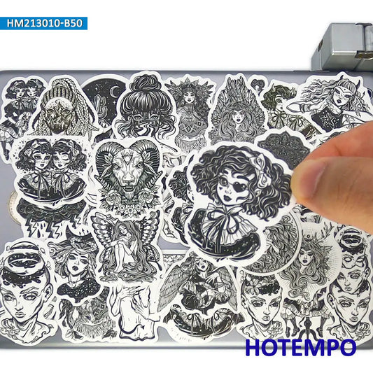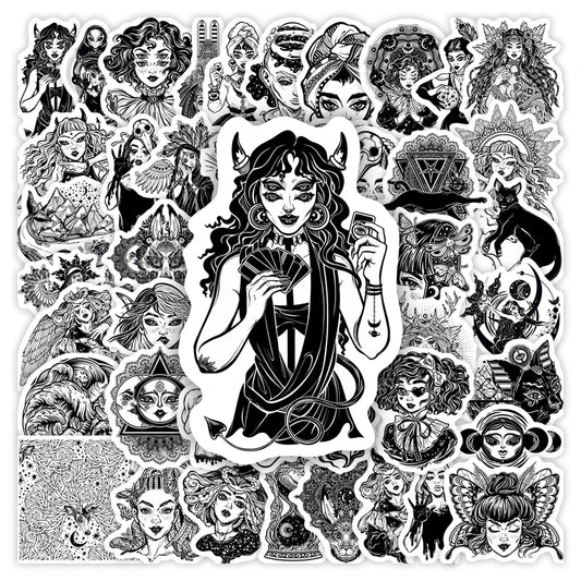 Fantasy Gothic Witch Stickers Black White DIY Toys Gift Decorative Decal for Laptop Phone Scrapbook Diary Luggage Waterproof