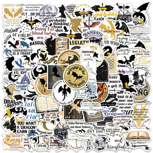 10/50/100pcs Fantasy Dragons Fourth Wing Book Stickers Aesthetic Decals DIY Stationery Notebook Phone Luggage Waterproof Sticker