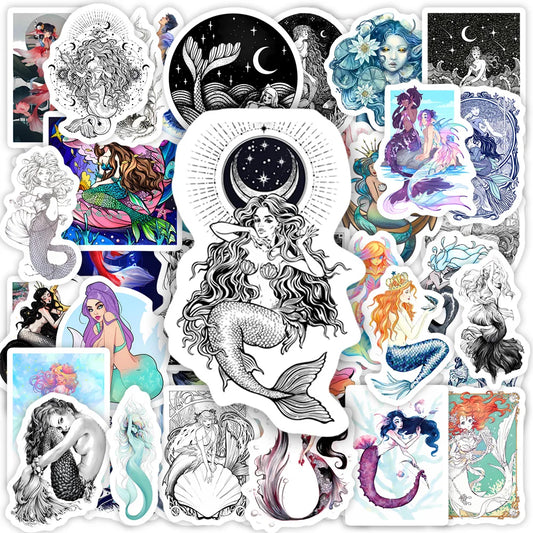 Watercolor Fantasy Mermaid Illustration Stickers DIY Toy Gift Decorative Decal for Phone Luggage Laptop Scrapbook Waterproof