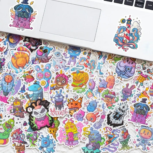 10/25/50pcs Funny Fantasy Weird Cartoon Cute Monster Psychedelic Waterproof Graffiti Sticker DIY Decal