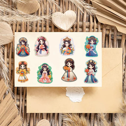 50Pcs Q Version Chinese Ancient Costume Flower Princess Girl Sticker for Kids Toy Decoration Guitar Luggage DIY Waterproof Decal