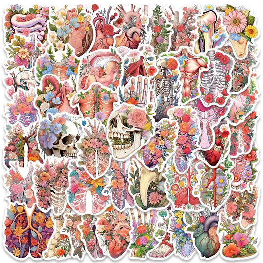 50pcs Colorful Cartoon Flowers Skull Human Organs Graffiti Stickers For Laptop Phone Guitar Luggage Waterproof Vinyl Decals