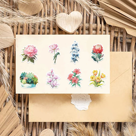 50pcs Plant Flower Stickers Aesthetic Ins Decals Kids Toy DIY Notebook Bike Phone Luggage Car Waterproof Decoration Sticker