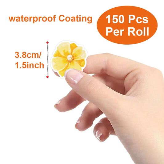 150pcs/roll Colorful Flowers Stickers 3.8cm/1.5inch Party Gift Decoration Label Scrapbook Stationery Stickers