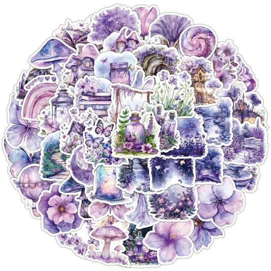 10/50pcs Cute Purple Magic Flowers World Cartoon Stickers Aesthetic Decals DIY Fridge Laptop Phone Car Decoration Sticker
