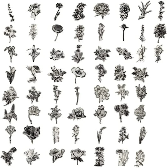 60 PCS Black and White Vintage Retro Flower Plant Stickers Decals for Laptop Scrapbooking Journal Planner Card Making