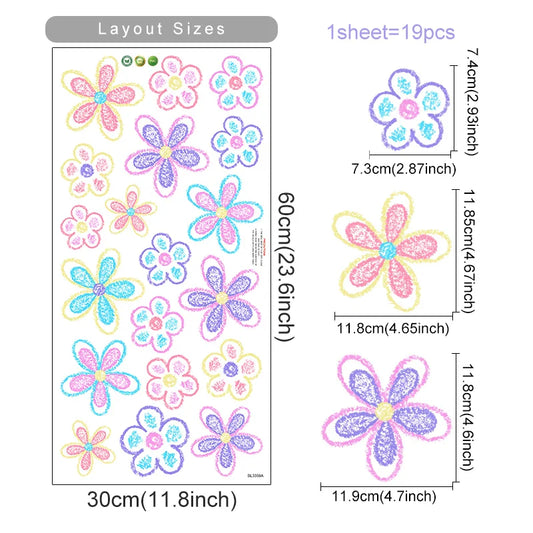 Boho Cartoon Flower Leaf Wall Stickers for Kids Nursery Decor