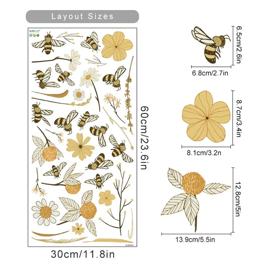 Cartoon Bees Flowers Wall Sticker Vinyl Removable Decals Kids Room Decor
