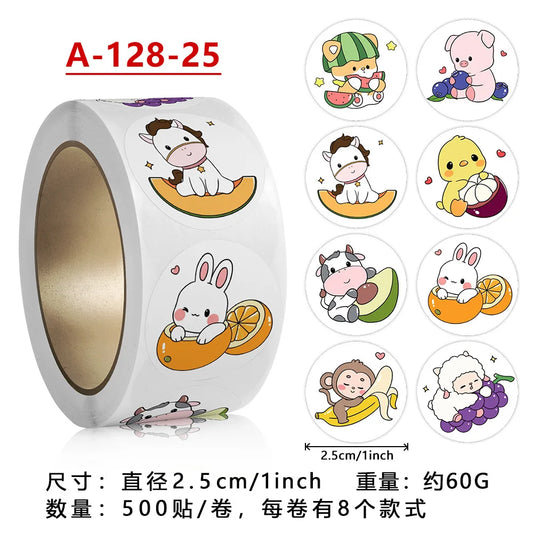 500Pcs Children's Cartoon Animal Stickers Baby Stickers Kindergarten Inspirational Little Red Flower Reward Roll Stickers