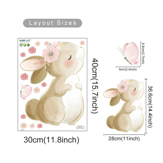 Boho Rabbit Butterfly Flower Wall Sticker Nursery Kids Room Decor