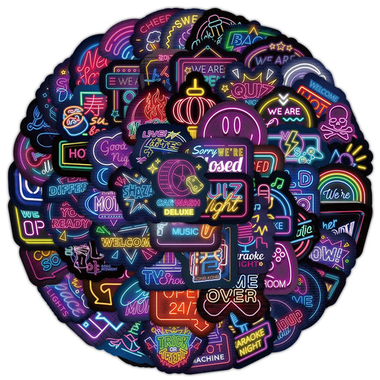 10/30/50/100pcs Cool Neon Light Cartoon Graffiti Stickers Decoration Laptop Fridge Diary Travel Luggage Stationery Sticker Toys