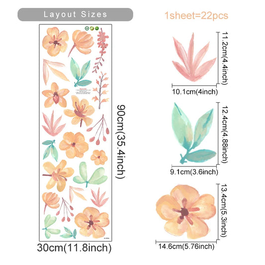Boho Watercolor Floral Wall Stickers for Living Room Bedroom Decor