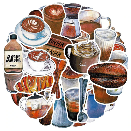 Coffee Drink Graffiti Stickers for Scrapbook, Suitcase, Water Bottle, Phone, Laptop, Guitar, Car, Skateboard - 10/25/50pcs