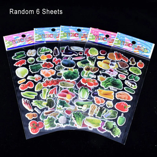 6 Sheets 3D Puffy Kids Stickers - Cartoon, Fruit, Vegetable - Birthday Gift, Scrapbooking