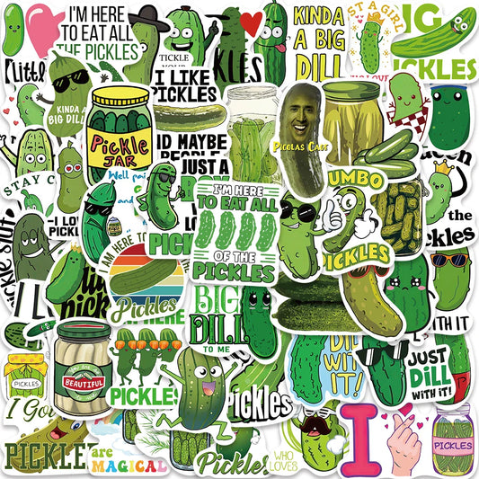 50PCS Cute Pickle Stickers for Laptop, Guitar, Skateboard, Water Bottle, Bicycle - Waterproof Decals