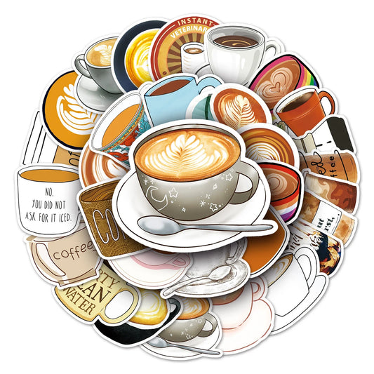 50Pcs Coffee Cartoon Waterproof Vinyl Stickers for Skateboard Snowboard Decal