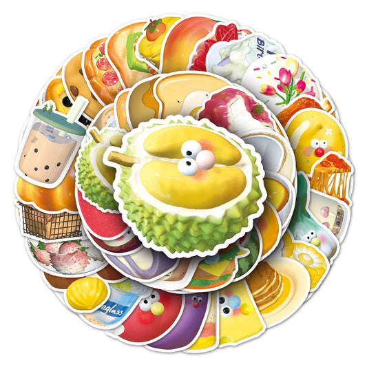 50Pcs 3D Cartoon Food Waterproof Vinyl Stickers for Skateboard Snowboard