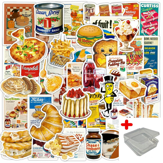 50pcs Retro Food Graffiti Stickers for Helmet, Wall, DIY Decoration with Storage Box