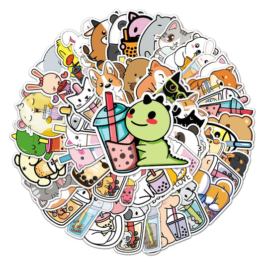 50Pcs Cute Cartoon Pet Milk Tea Waterproof Vinyl Stickers for Skateboard Snowboard Decals