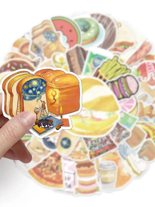 50pcs Cute Dessert Graffiti Stickers for Helmet, Wall, DIY Decoration