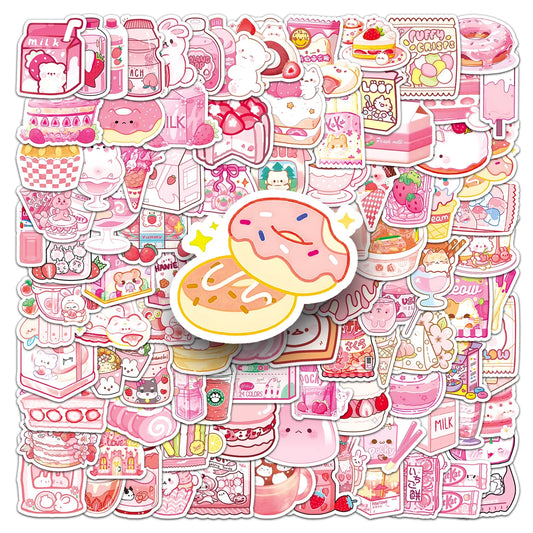 103Pcs Cute Pink Food Waterproof Vinyl Stickers for Skateboard Snowboard