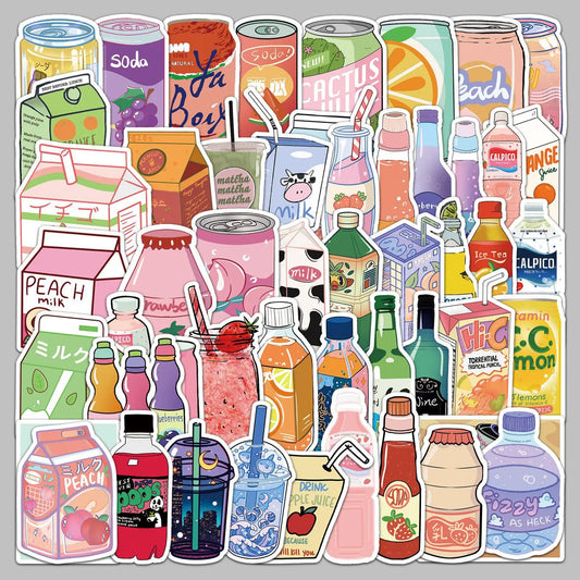 50pcs Cartoon Drink Stickers for Helmet, Wall, DIY Decoration