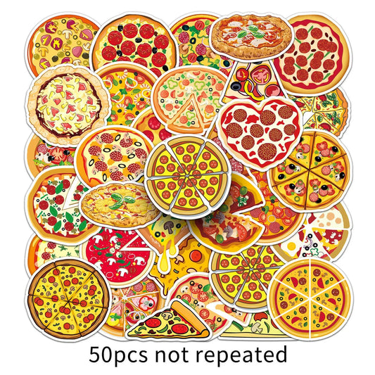 50pcs Cartoon Pizza Stickers for Helmet, Wall, Desktop Decoration