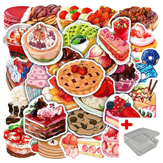 50pcs Dessert Graffiti Stickers for Helmet, Wall, DIY with Storage Box