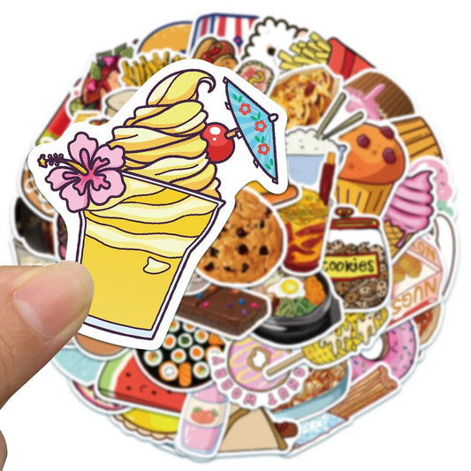 50Pcs Cartoon Gourmet Food Graffiti Stickers For Children Toys Luggage Laptop iPad Skateboard Notebook Stickers Wholesale