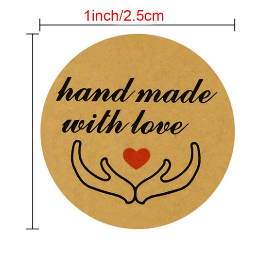 100-500pcs Handmade With Love Sticker Round Kraft Paper Adhesive Labels Baking Wedding Decoration Party Decoration Stickers