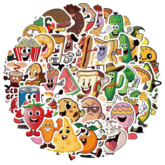Cartoon Food Stickers Pack: Waterproof Decals for Luggage, Laptop, Guitar, Skateboard, Bicycle, Car