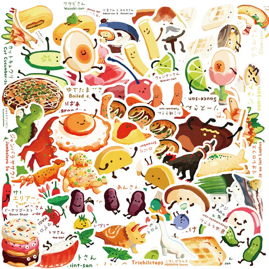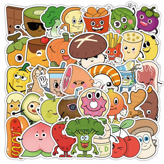 Cute Food Cartoon Stickers Decal Pack for Laptop, Motorcycle, Luggage, Snowboard, Fridge