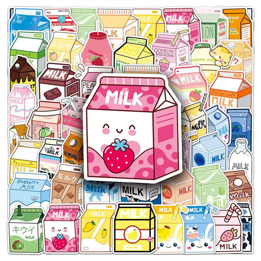 Cow's Milk Stickers Pack: Breakfast Drink Cartoon Decals for Luggage, Laptop, Phone, Car